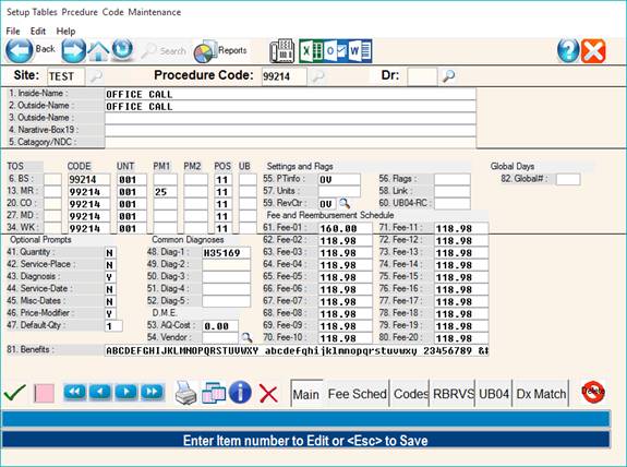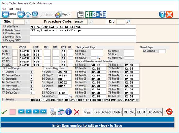 description of the procedure code. The system allows entry