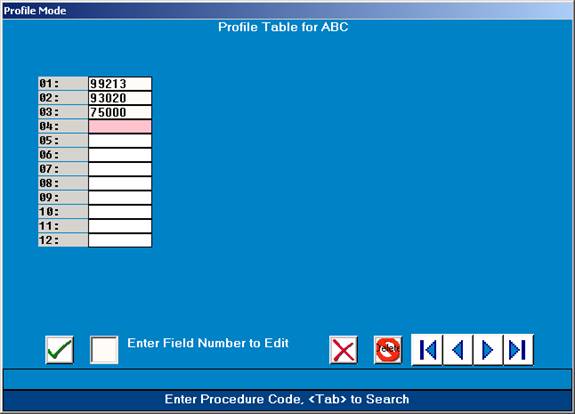 **When you enter P for Profile, the procedure codes used in