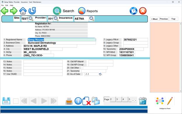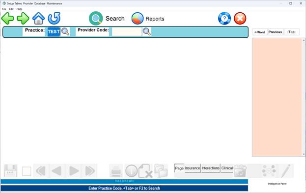 Entry), the first screen displayed will be the Provider Insurance