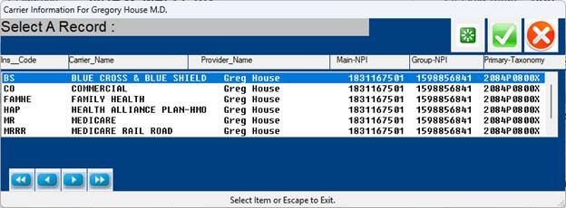 (B)ack: Takes you back one physician ID number.