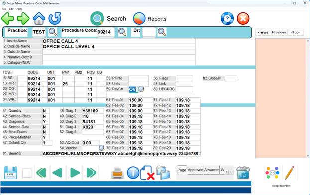 Example Screen from the Procedure Code Table: