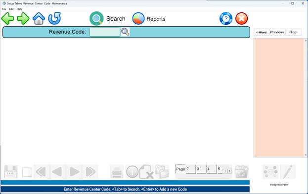 SEARCH: To search for a Revenue Center code, at the ENTER CODE