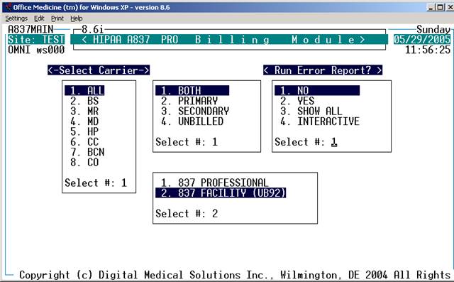 File for UB92. The system will prompt as follows: