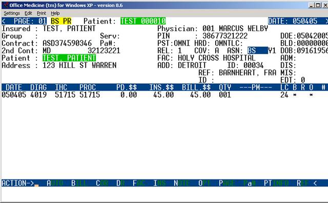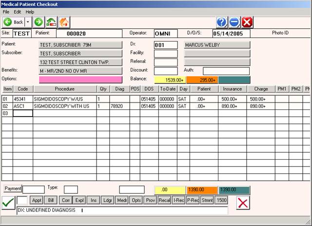 Patient Information screen: Patient's name, subscriber's name,