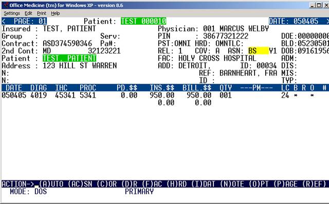 EXPLANATION OF TOP (PATIENT INFORMATION) PORTION OF SCREEN: