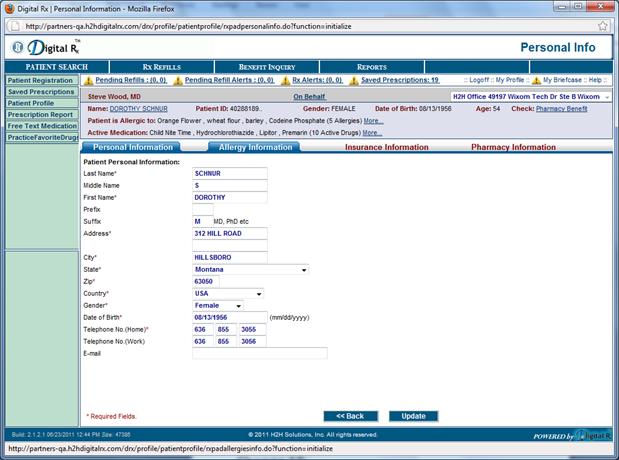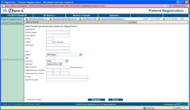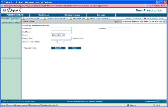 Patient Registration is done behind the scene. The practitioner does not have to enter the patient information manually. The patient information is pushed from the EMR database to Digital Rx.