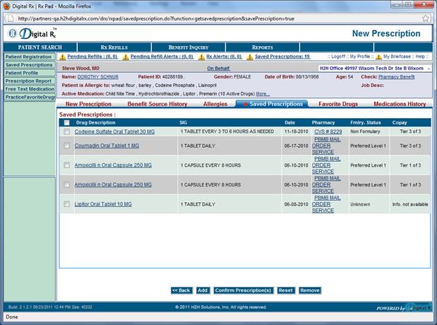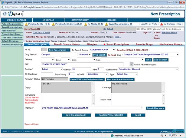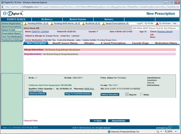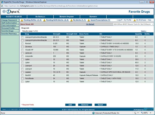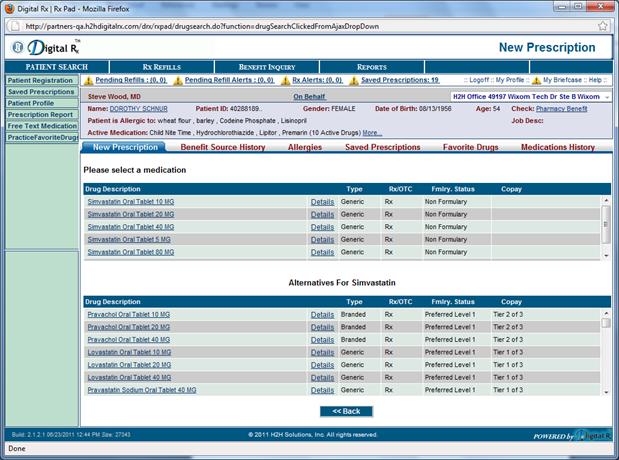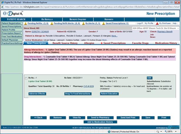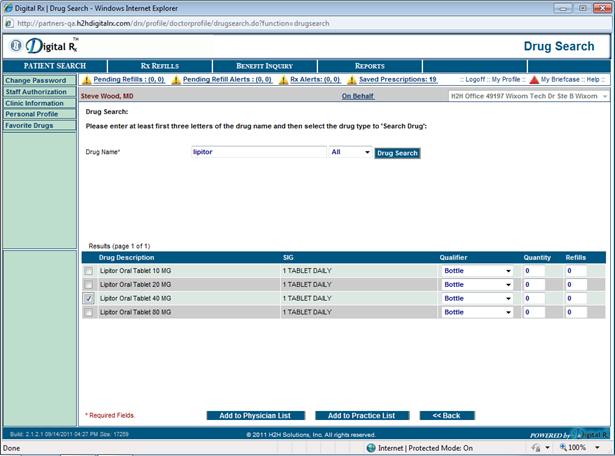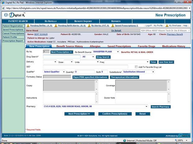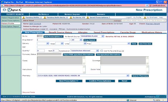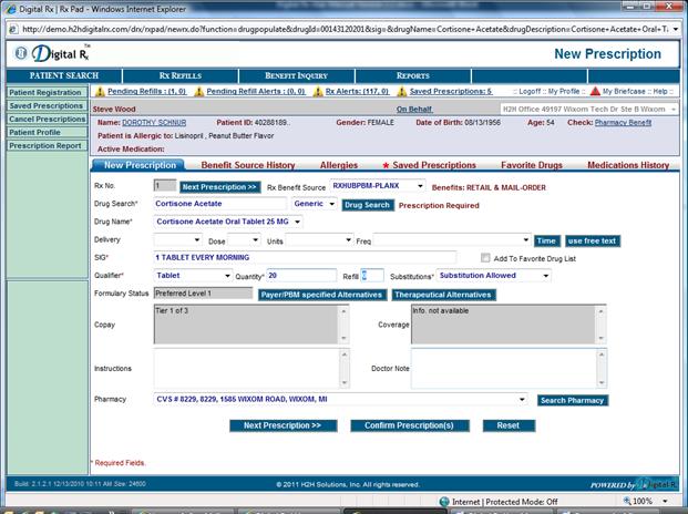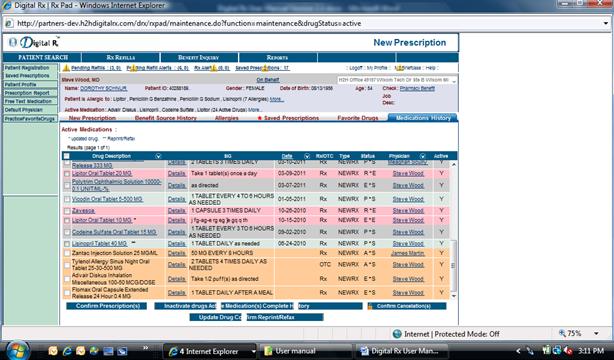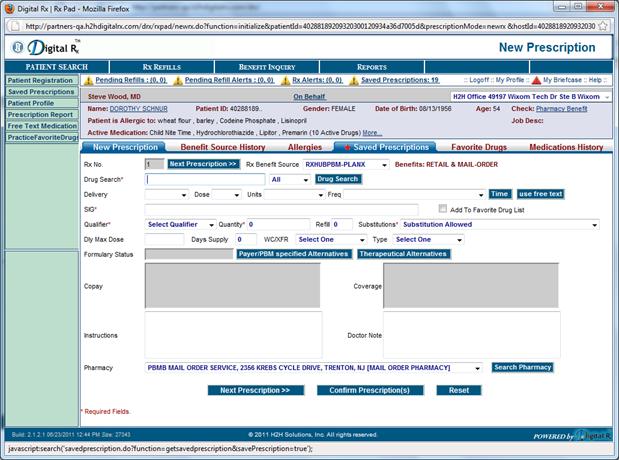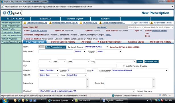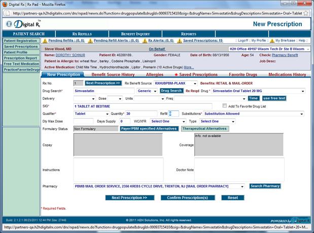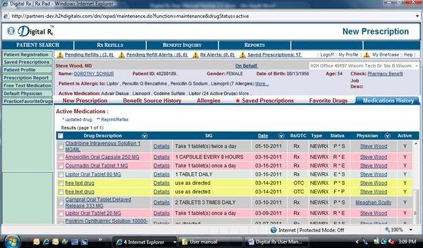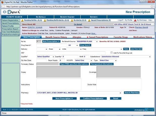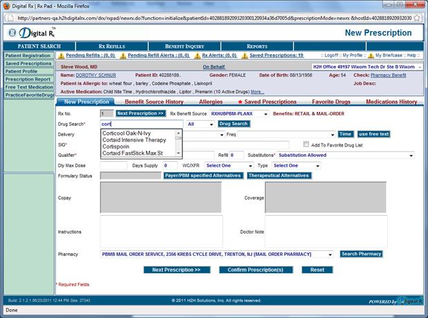 Through the use of any device with an Internet connection using a valid browser (Internet Explorer®, Firefox®, Safari®, Opera®, Chrome®, etc.) the physician can prescribe, refill and electronically deliver medications to the pharmacy with the most updated and accurate information available. Digital Rx is an easy to use application that includes the most current resources for today’s health care professionals.