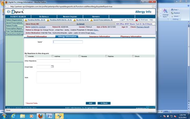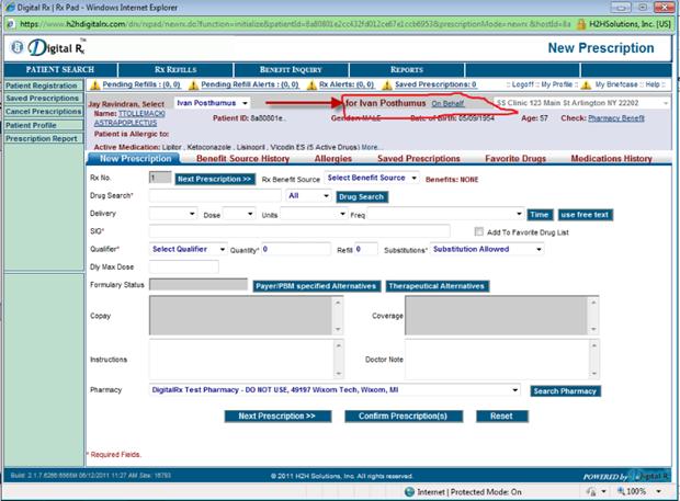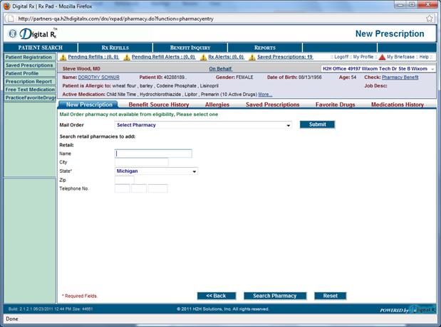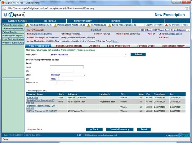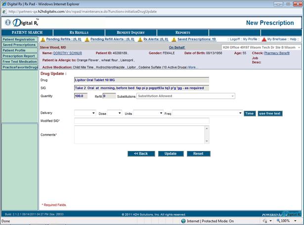 Digital Rx is an Internet delivered application that allows the physician to send safe, secure prescriptions electronically to the patient’s pharmacy of choice. Digital Rx has been designed and tested by medical professionals in order to provide the highest level of functionality for physician use.