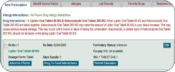 Prescribing medications with the utmost consideration for the patient’s drug/food/allergy interaction history can be a time consuming activity in the physician’s already busy office. Working with the patient to determine their level of benefits is also an important consideration. Digital Rx provides the physician with the patient’s drug history, active medications, drug-drug interaction warnings, drug-food interaction warnings, drug-allergy interaction warnings, insurance specific formulary and insurance benefit information, all in real-time.