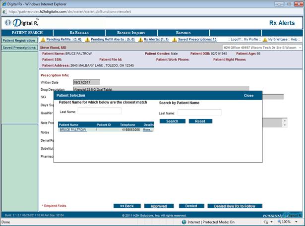 Upon selecting the patient from the pop up, the following screen will appear for approval or denial (as shown in screen shot above).