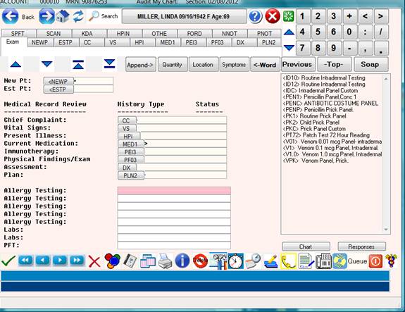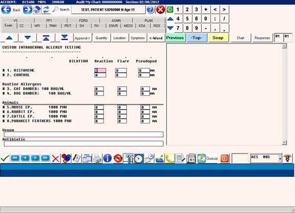 Call up the patient to be tested and open the EXAM page.