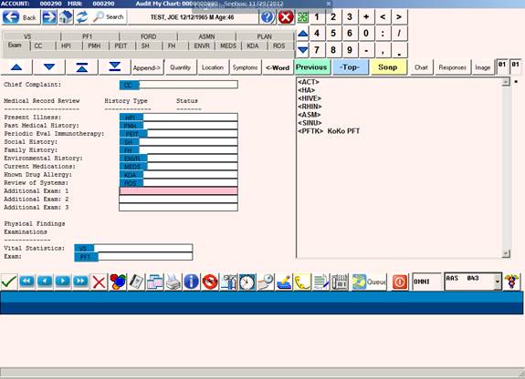 3) Click the Exam button and pull up the chart needed for the PFT or Spirometry.