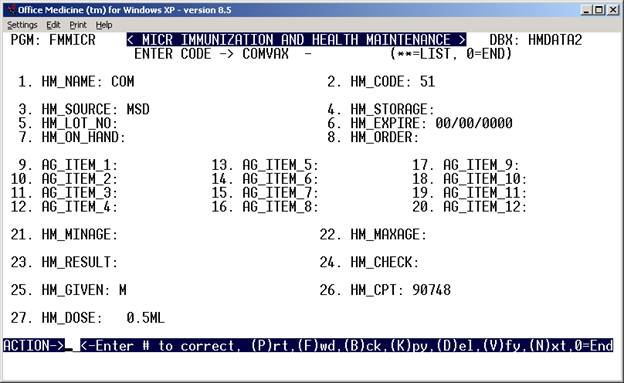 Please note – example of the dictionary, HMNT screens are already contained within the Office Medicine ™ system.