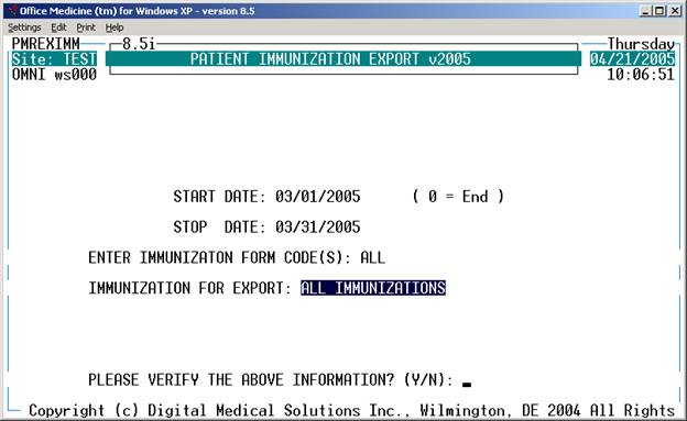 The export program will then create the MCIR file which will contain all the immunizations given within the time period specified.