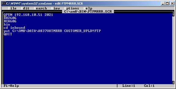 Now in the general program enter ftp.exe -sC:\om8\bin\FTPMRRR.scr
