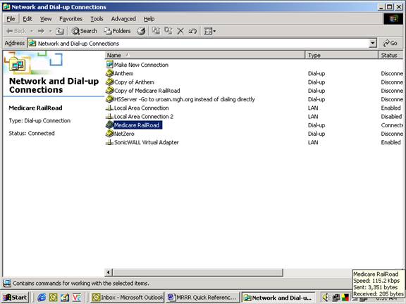 This process will dial in to the Palmetto GPNet system and connect your computer to the Medicare Railroad network. This is the same process and the same icon used to connect when transmitting claims manually above.