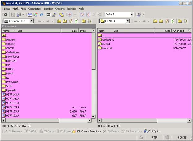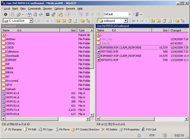 Example Screen: Files have been moved from OUTBOUND (right)