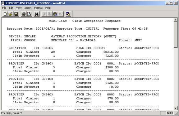 rEDI-link - Claim Acceptance Response