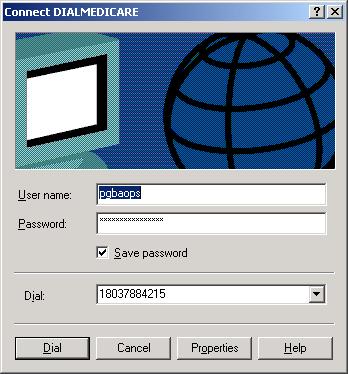 The dialup must initially created and be named as “DIALMEDICARE”