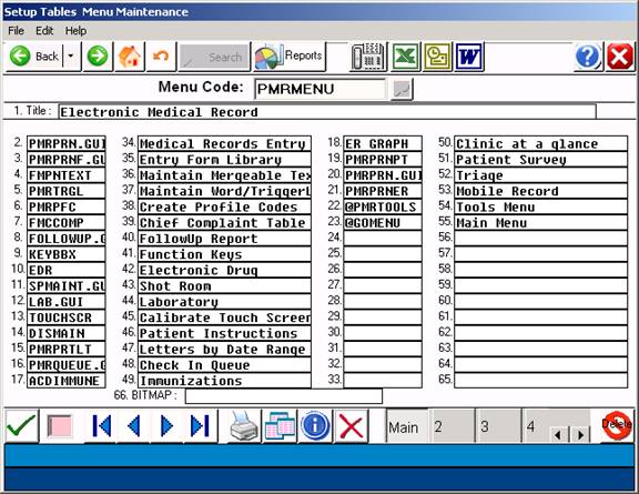 Example: The Medical Records Menu code is PMRMENU.
