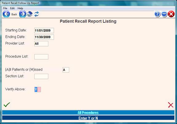 PROCEDURE: From the Patient Recall Menu select Option 4 and