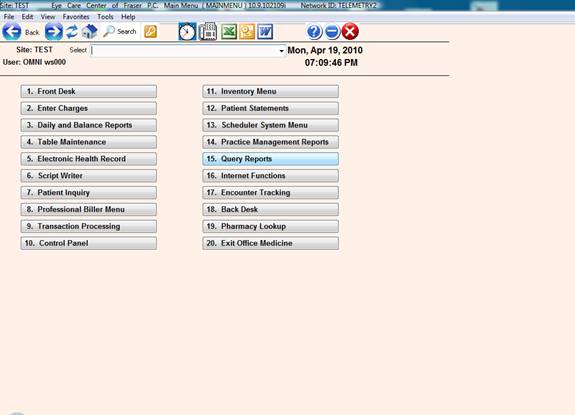 Note: Due to HIPAA safety restrictions, do not run this report if you are accessing the system over the internet ( e.g. from home) or in a non-secure area ( e.g. The front desk ), or you do not have up to date virus software.