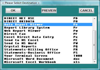Select the appropriate DESTINATION and press <Enter Key>.