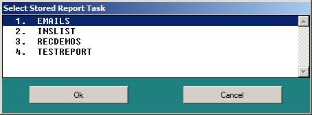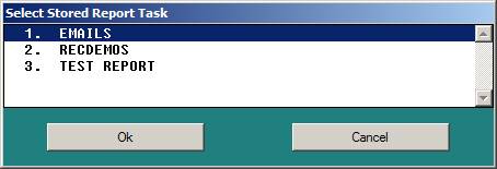 Selection “Stored” will present the list of stored reports: