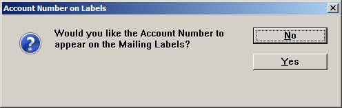 PRINT ACCOUNT NUMBER ON LABELS? Y/N If you