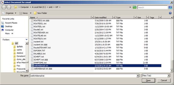 You will be prompted for the email text document and subject of the email to be sent to all patients matching the report query