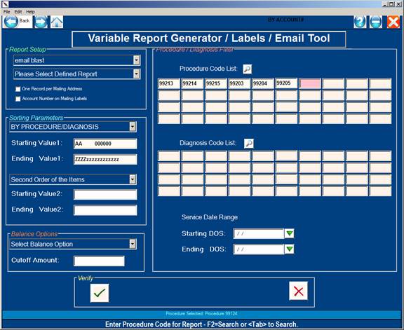 PROCEDURE/DX REPORT WRITER
