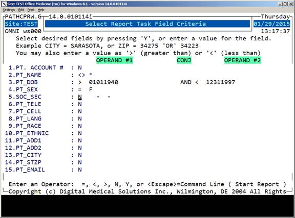 If all the patient records are required, just press <Enter> for the starting and Ending Prompt.