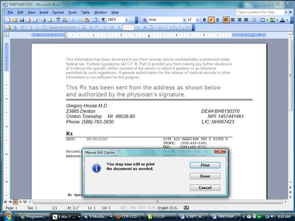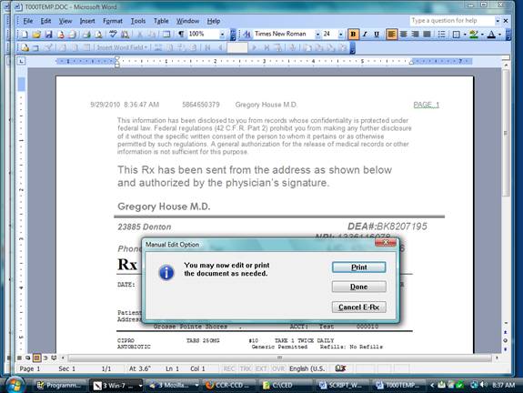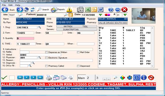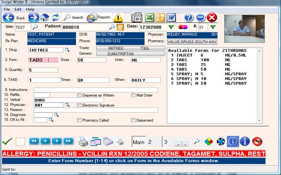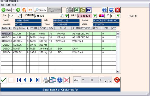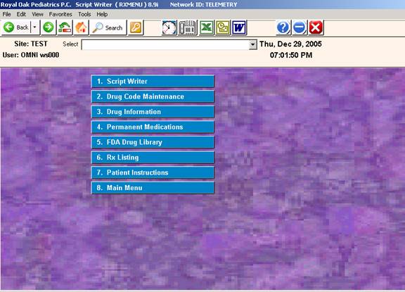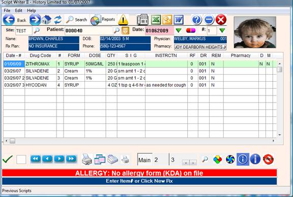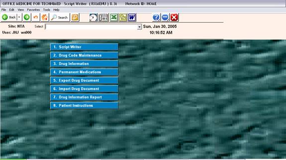 OVERVIEW: The Script Writer program is designed to dispense prescriptions in a printed or electronic format; to keep a chronological drug record per patient; to store information on medications pertaining to their administration, and to store information as maintained by the user that pertains to the history and interaction of certain medications and/or groups of medications.