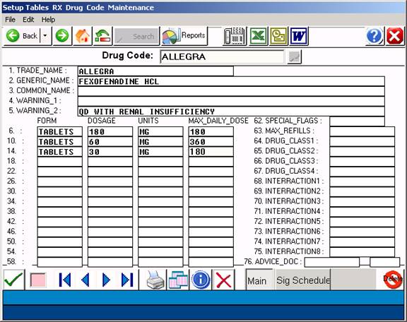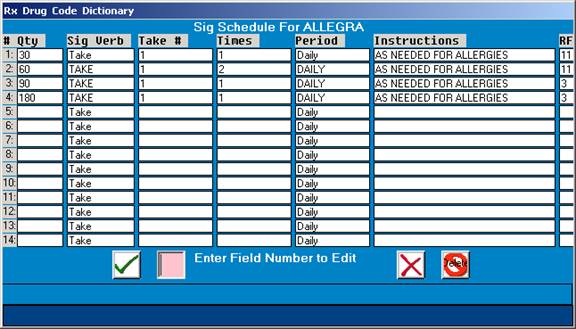 7.- 9. PM SIG1-3: Displays the Sig Schedule for this drug.