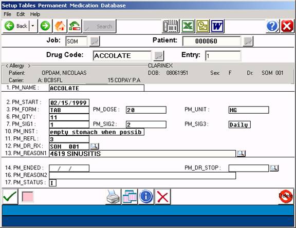 13. PM REASON1: Displays reason for medication (diagnosis) if