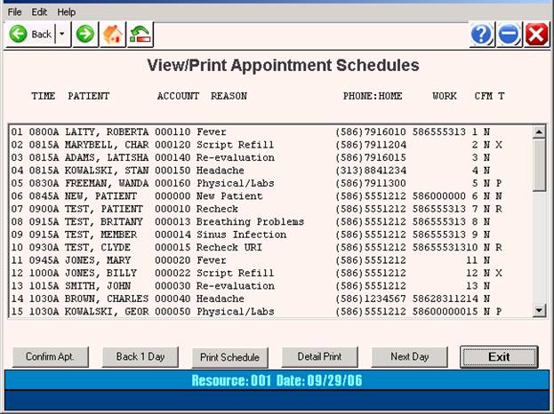 one calendar day, print the screen, return to the appointment scheduler screen.