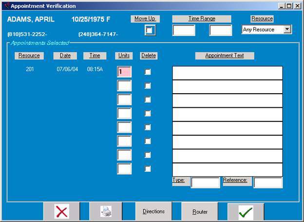 Units Enter the number of appointment slots needed. Cursor moves to Appointment