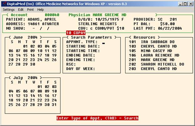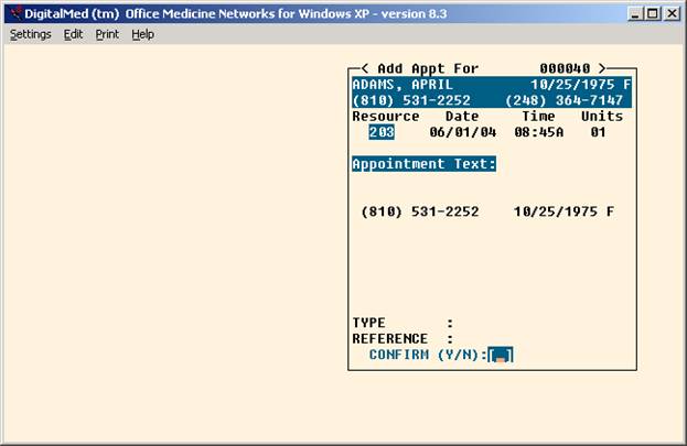 Reference Enter a referring physician or <Return> to confirm the appointment. The screen