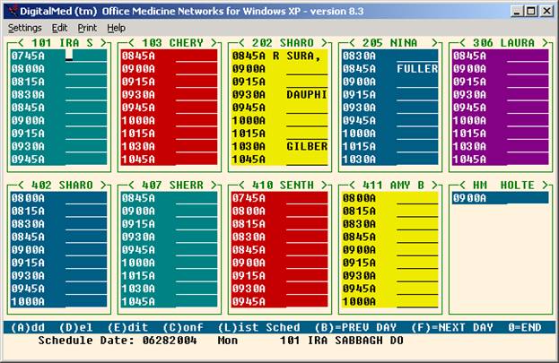(D)el To delete an appointment, place the cursor on the appointment slot and type D.