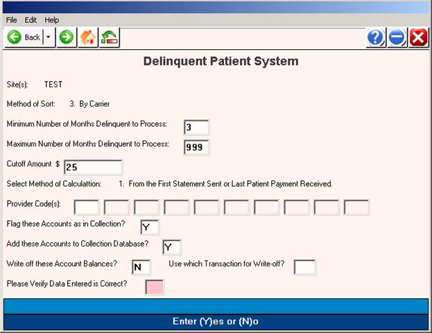 Starting # of Delinquent Months: Enter the number of months you want the system to begin scanning accounts.