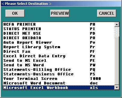 Select Output Device: A window will open allowing you to select the appropriate output device. Make your selection and <Enter Key>. If you select an LP printer, the system will ask if you want condensed print.