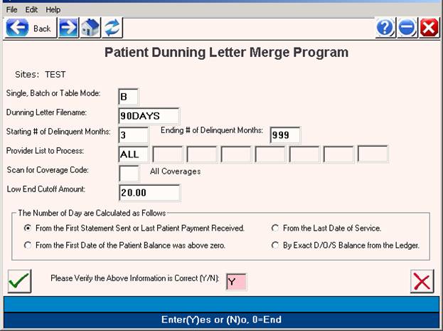 Dunning Letter Filename: The name you assigned the letter when you saved it in your word processor. You may <Tab> to have the system open a window listing letters you have created in your word processor. The first line of each letter is displayed.