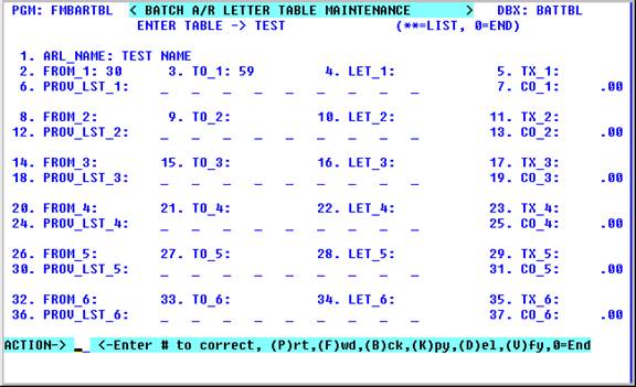 To select a letter use the <Up>/<Down> arrow keys to highlight the line and press <Enter Key>. The filename of this letter is inserted at the Dunning Letter Filename prompt.