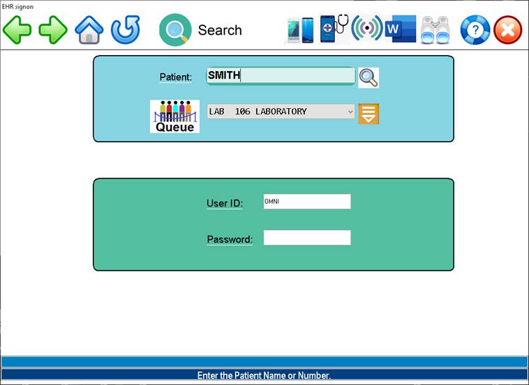 the initial EHR sign-on Screen (shown below ) type the