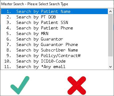 Selecting a Patient by Name or other item in