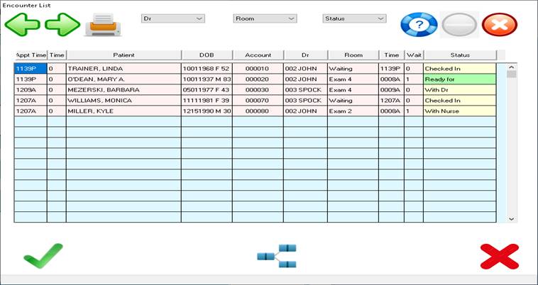 including the Encounter List ( Patients whom are signed in the waiting room ), the