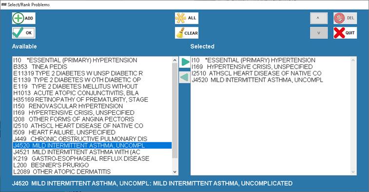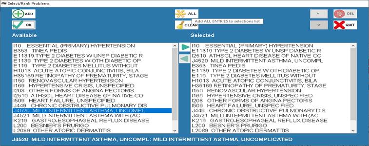 for easy selection and ordering of diagnoses from the Patient Problem List. The