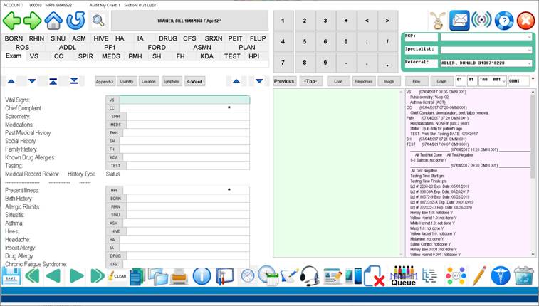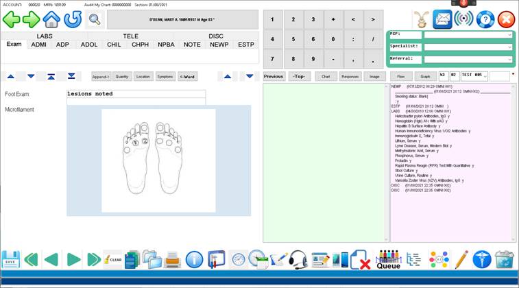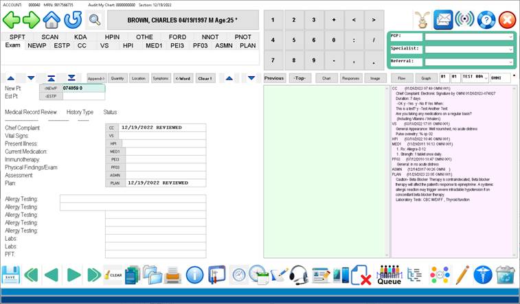 Charting process for the current date Click the large “NEW EXAM”