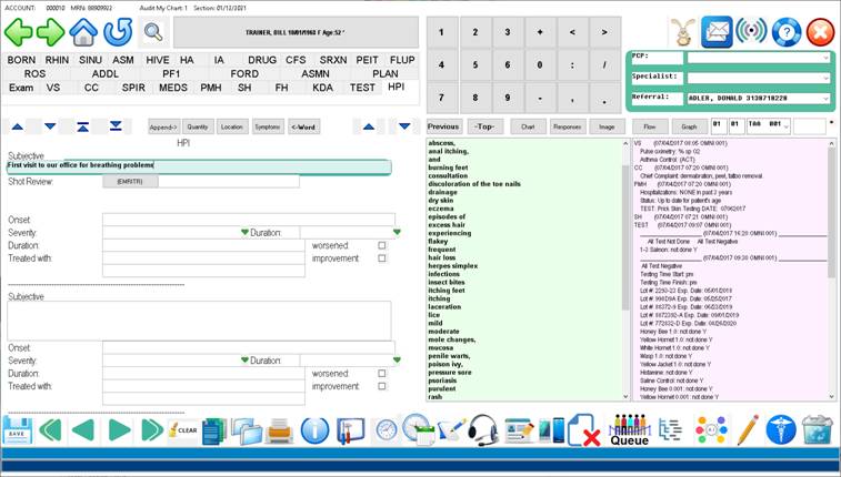 program also interfaces with the billing module, the appointment system, and offers